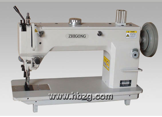 采用單針擺梭,構成雙線鎖式線跡,升降式送料牙,交替式壓腳,此機構在額定范圍內的任何長度針距下,縫制滑性,粘性及縫紉特長制品時,都能保證上、下層不移,使制品整齊,線跡美觀。連桿挑線機構,使主軸轉數得以提高,減輕聲音,保證整機質量,延長使用壽命。